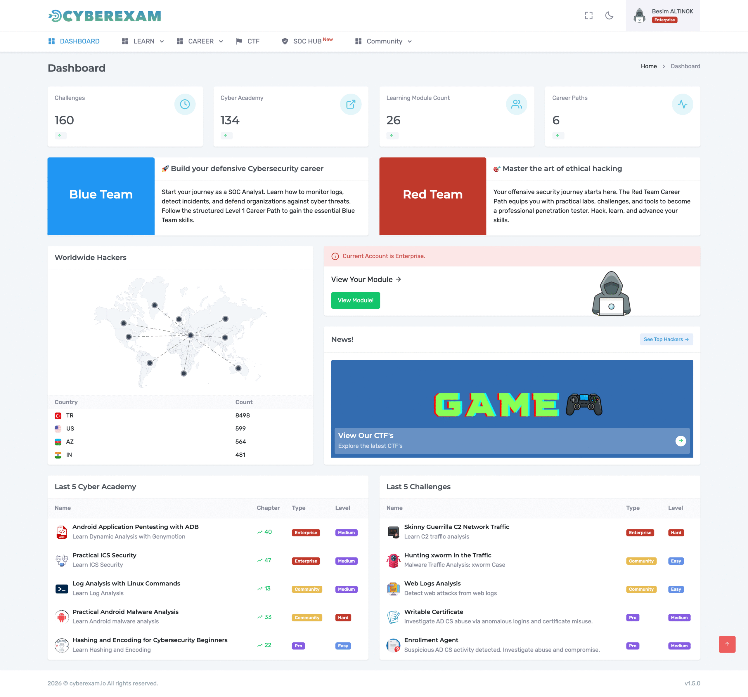 Offers hands-on, scenario-based cybersecurity challenges, enhancing real-world skills. The Blue Team and Red Team labs are designed to accurately reflect real-world job roles and responsibilities.